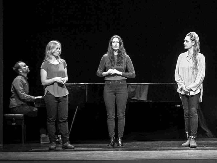 Die menschlichen Geschichten stehen eindeutig im Vordergrund. Vier Schauspielerinnen und Schauspieler stehen auf der Bühne und sprechen quasi direkt zum Publikum. Es ist, als ob die Schauspieler:innen die Menschen im Publikum direkt ansprechen, ihnen die Hand reichen und sie reinziehen in eine Welt, die die Zuschauer:innen von nun an nicht mehr kalt lassen wird. Verwickelt, verschlungen, verbunden und vernetzt mit den Protagonist:innen der Monologe, folgt das Publikum gespannt den Wegen der erzählten Geschichten. Kostüme oder Bühnenbild benötigen wir nicht. Ergänzt wird das gesprochene Wort durch musikalische Begleitung, meist ein Cello. Und ich habe eigens für die Klima-Monologe Songs entwickelt, die dem Ganzen nochmal eine andere Dimension und eine andere Form der Ansprache geben.
