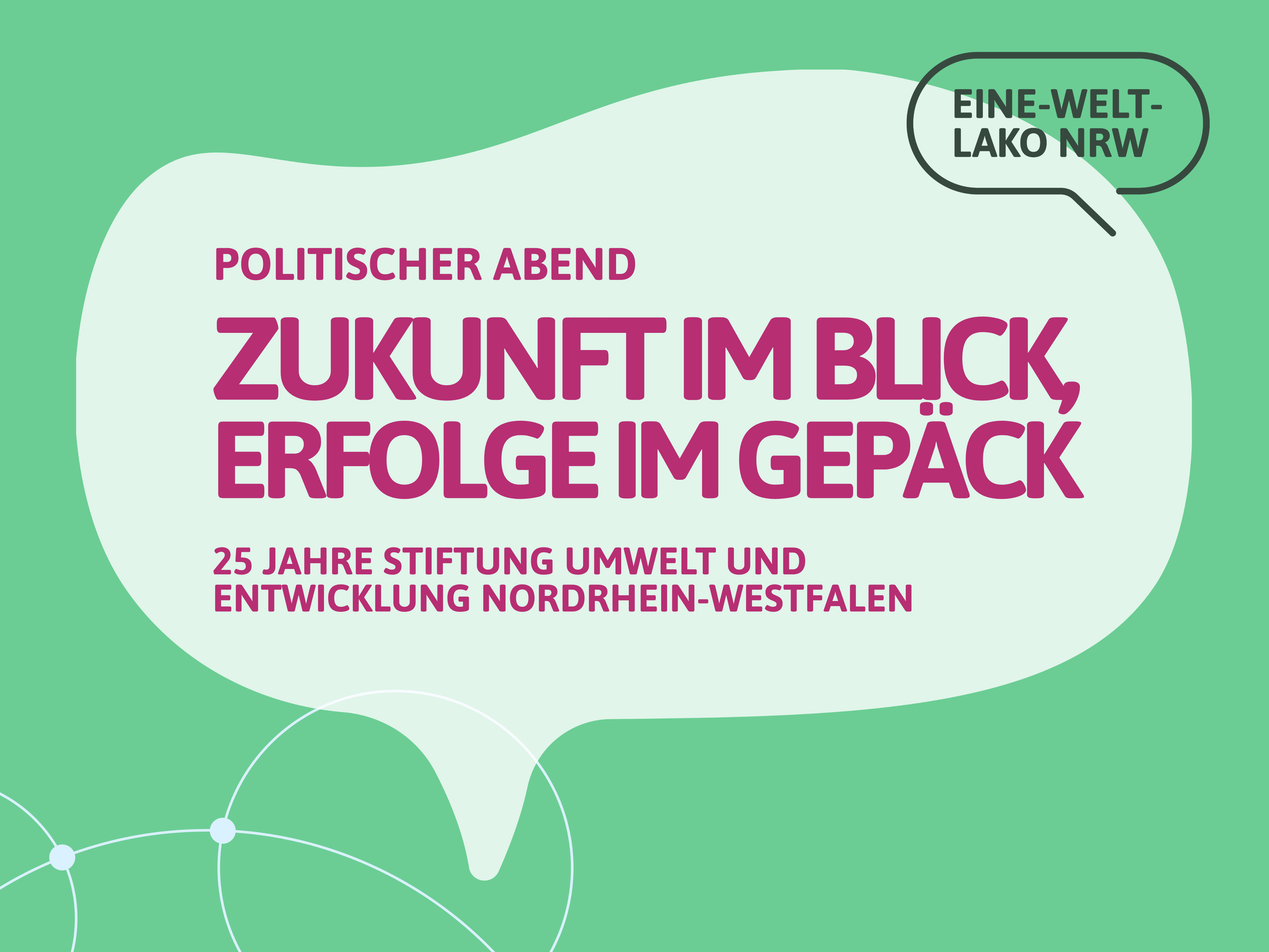 Inspirierende Gespräche, persönliche Geschichten und frische Denkanstöße geben Impulse für die Zukunft. Unter dem Motto „Zukunft im Blick, Erfolge im Gepäck – 25 Jahre Stiftung Umwelt und Entwicklung Nordrhein-Westfalen“ möchten wir entwicklungspolitisches Engagement in NRW im Rahmen der Eine-Welt-Landeskonferenz mit Ihnen feiern.